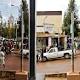 KILLEEN, TX - APRIL 04: Malachi Muncy (L) and his daughter Lily Muncy place flowers into the fence near the east gate to Fort Hood as they gather during a vigil to remember those killed and injured by Iraq war veteran Ivan Lopez on April 4, 2014 in Killeen, ...