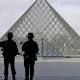 Police officers patrol at the pyramid outside the Louvre museum in Paris,Friday, Feb. 3, 2017. Paris police say a soldier has opened fire outside the Louvre Museum after he was attacked by someone, and the area is being evacuated. (AP Photo/Thibault ...
